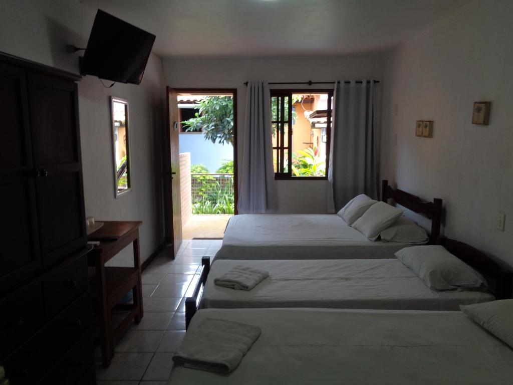 Dispomos de quartos para duas , três e quatro pessoas e todos contam com varanda e rede para o descanso e relaxamento dos nossos hóspedes.